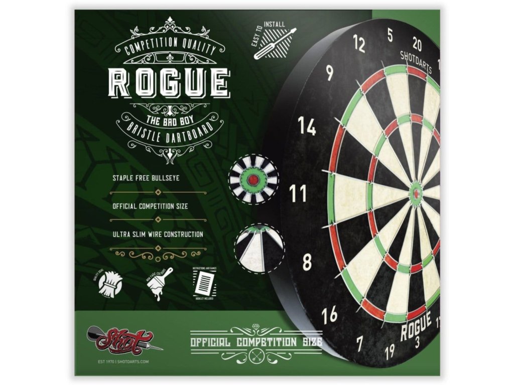 Sisalový terč Shot Rogue je terč s kruhovými profilom drôtu. Terč má pevnú konštrukciu z okrúhlych drôtov s tenkými drôtenými spojovacími prvkami. Terč má turnajovú veľkosť a nie sú na ňom žiadne spony, takže skórovanie je zaručené. Súčasťou balenia je držiak terča.